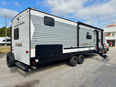 The Puma Camping Edition by Palomino offer an affordable travel trailer for rookie campers or seasoned RVers! They are built with 5/8" tongue and groove plywood flooring and a front diamond plate for added protection. There are also exterior magnetic baggage door latches, back up camera prep, a battery disconnect. Head inside to find Thermofoil countertops with a smooth drop edge, bedroom USB ports and outlets, and pleated shades in the living room.
